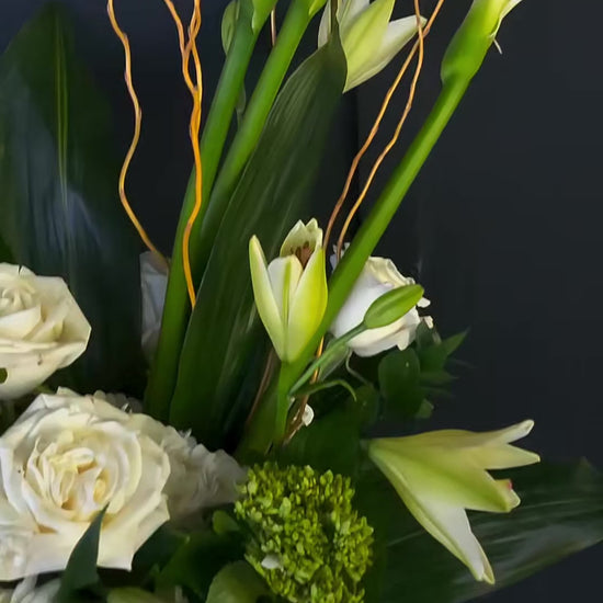 The "Eternal Grace" arrangement showcases carefully selected hydrangeas and roses, meticulously arranged to convey timeless sophistication and elegance. This expert floral composition embodies refined beauty, making it an impeccable choice for any distinguished setting.